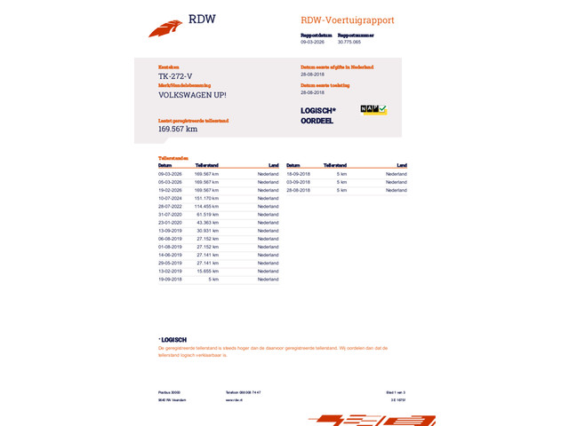 Deze Volkswagen Up! 1.0 BMT move up! uit 2018 heeft 169.000 km (NAP) gereden en is uitgevoerd als praktische 5-deurs. Ideaal voor in de stad, maar ook prima inzetbaar voor dagelijks woon-werkverkeer. Dankzij het lage verbruik blijven de kosten lekker overzichtelijk.